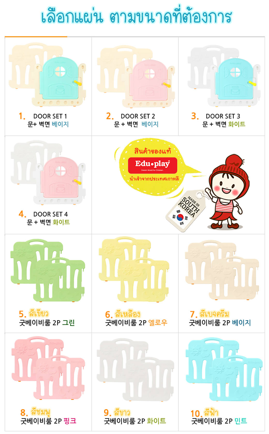 แบรนด์ Eduplay ยักษ์ใหญ่แห่งวงการของเล่นประเทศเกาหลี แนะนำคอกกั้นเด็กเกาหลี Edu Play ได้พัฒนาคอกกั้นเด็กเกาหลี ให้มีความปลอดภัยสูง มีรูปลักษณ์ภายนอกที่สวย มีฟังก์ชั่นต่อเพิ่มขยายได้