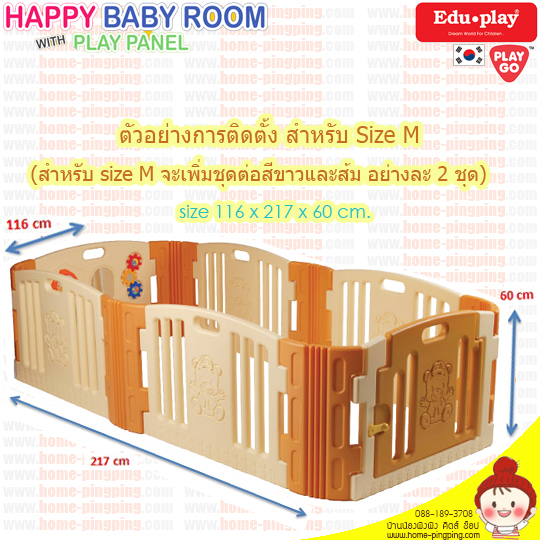การต่อที่กั้นเด็กแบบ size M จะมีขนาด 116*217*60 ซม. หรือขนาด 1 คอกครึง จากขนาดปกติค่ะ การต่อแบบนี้จะต้องมี part เสริมเพิ่มขึ้นมา คือมีชุดสีขาวและชุดต่อเพิ่มชึ้นมาอย่างละ 2 แผ่นค่ะ