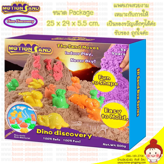 Motion Sand ทรายมหัศจรรย์ 3 มิติ ชุดไดโนเสาร์ทราย 500g พร้อมแม่พิมพ์ไดโนเสาร์ 3 มิติ 3D Sandbox Set ทรายมหัศจรรย์ ทรายแม่เหล็ก ทรายไฮเทค ทรายไม่แห้ง ทรายไม่ติดมือ ทรายนิ่ม ทรายมหัศจรรย์ 3 มิติ Dinosaur สนุกสนานกับละครสัตว์ที่เด็กๆชื่นชอบ ตื่นเต้นกับฉาก 3 มิติสมจริง พร้อมบล็อกพิมพ์รูปสัตว์ 3 มิติเพิ่มความท้าทายค่ะ ร่วมผจญภัยในโลกล้านปี ร่วมเปิดจินตนาการค้นหาไดโนเสาร์ที่สูญพันธุ์ไปแล้ว สนุกสนานกับการขุดหากระดูกไดโนเสาร์กันค่ะ
