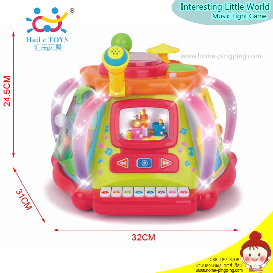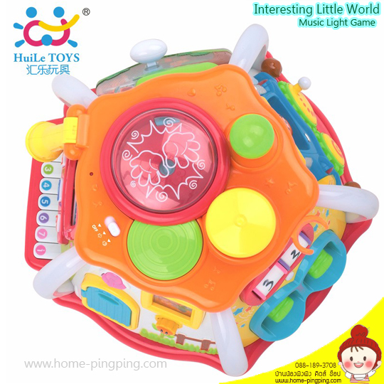 กล่องกิจกรรม 6 ด้าน (ตัวใหญ่)Interesting Little World with Music / Light / Game ยี่ห้อ Huile Toys นี้ จะช่วยพัฒนาทักษะการเรียนรู้รอบด้าน ทั้งด้านประสาทสัมผัสทางการมองเห็น การเคลื่อนไหวกล้ามเนื้อมือ การได้ยิน การฝึกพูดตามคำหรือเพลงง่ายๆ ได้ดีค่ะ ขนาดและน้ำหนักของตัวสินค้าไม่ใหญ่และหนักจนเกินไป คุณพ่อ คุณแม่จึงนำไปสร้างความสนุกสนานให้กับลูกน้อยได้ทุกที่ทั้งในบ้านและนอกบ้านเลยค่ะ