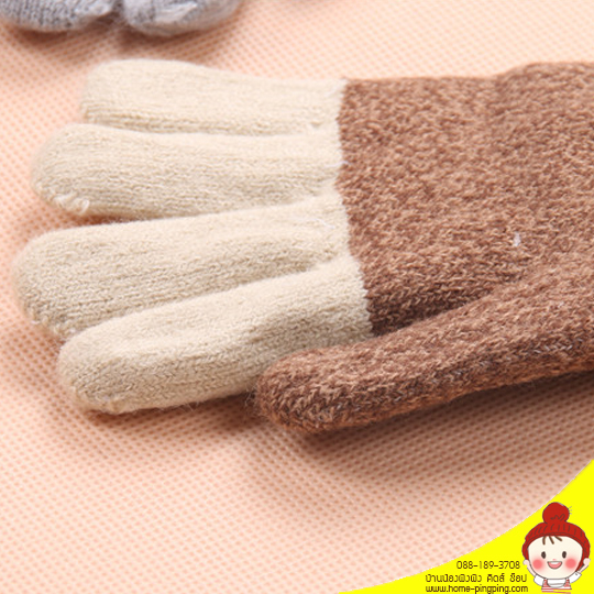 ถุงมือถักกำมะหยี่ แบบหนา มีนิ้ว