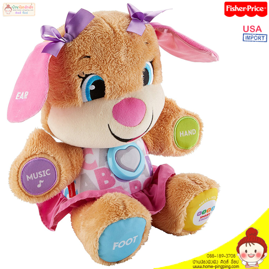 ตุ๊กตาหมาน้อยอัฉริยะ TUMMY Laugh & Learn™ Smart Stages Puppy Sis™ "สินค้าของแท้จาก Fisher Price มีกิจกรรมให้เลือกมากมาย มีลูกเล่นเยอะแยะ ร้องเพลงเป็นภาษาอังกฤษบอกส่วนต่างๆ ของร่างกาย ลูกน้อยได้พัฒนาการที่ดีและเร็วขึ้น และได้ความคุ้นเคยกับภาษา ฝึกพูดอังกฤษเบื้องต้นได้ด้วยตัวเอง เพราะเขาจะชินกับการพูดคุยขอยเจ้าตูบทุกๆๆวัน ทำให้ลูกซึมซับภาษาอังกฤษอย่างไม่ตั้งใจค่ะ