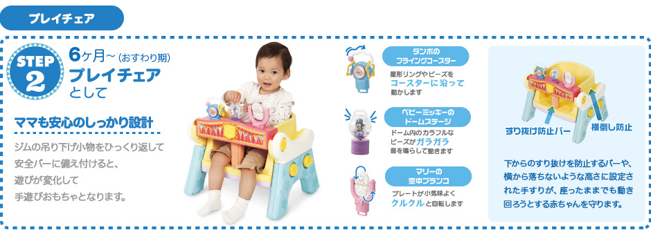 step 2: Sitting Desk ปรับเป็นชุดเก้าอี้หัดนั่งพร้อมของเล่นกิจกรรม สำหรับเด็กวัย 6 เดือน วัยที่กำลังเรียนรู้การหัดนั่ง ชุดเก้าอี้นั่งพร้อมชุดของเล่น ทำให้เด็กรู้สึกสนุก และไม่เบื่อ ชุดเก้าอี้หัดนั่งมีมาพร้อมชุดอุปกรณ์ safety bar ป้องกันเด็กไม่ให้หล่นจากเก้าอี้