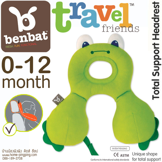 หมอนรองคอและศีรษะเด็ก BENBAT Travel Friends ให้นอนตามหลักสรีระ สำหรับวัย 0-12 เดือน สีเขียว ลายกบ