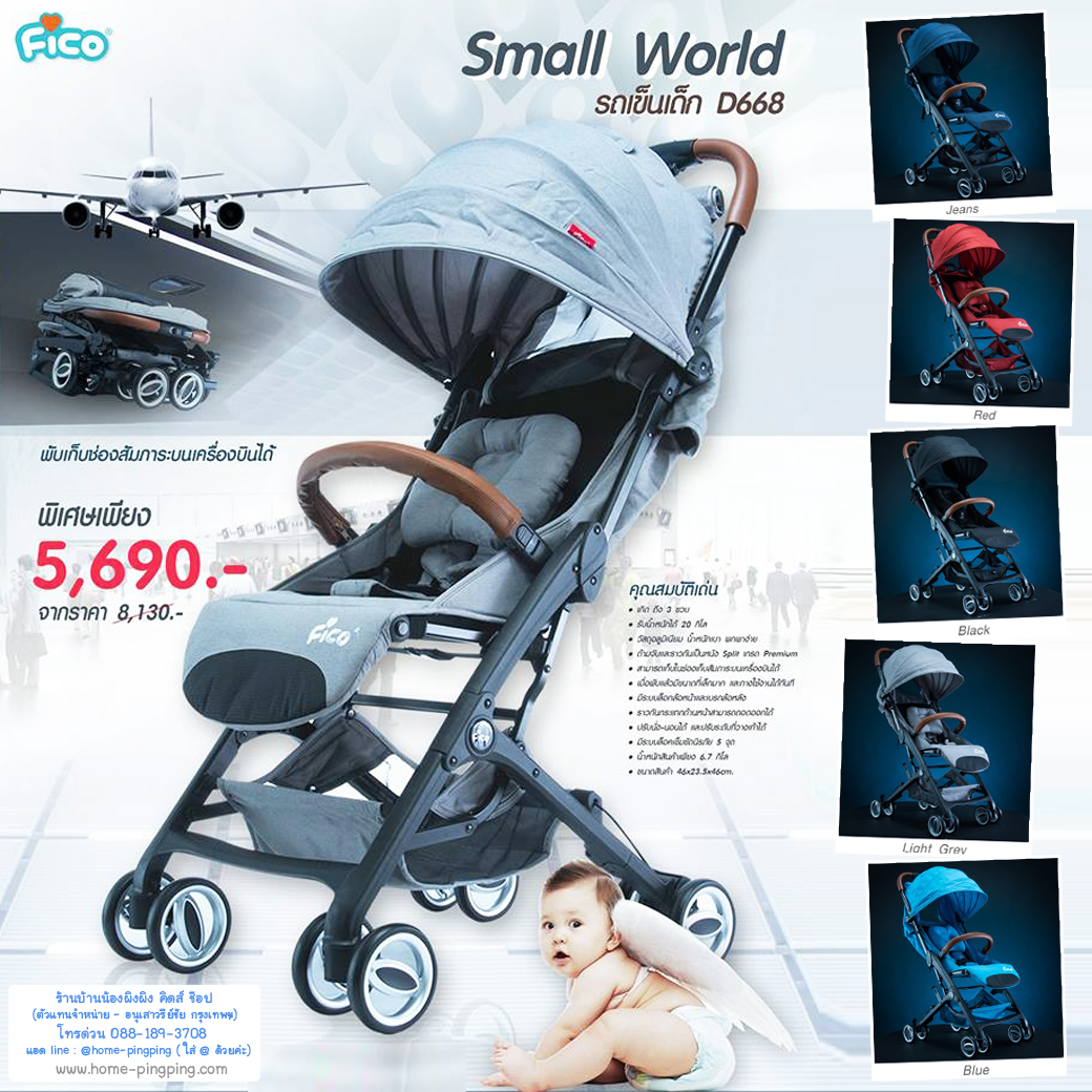 1. ยี่ห้อ FICO สินค้านำเข้า ผ่านตัวแทนศูนย์ประเทศไทย2. มีรับประกันสินค้าจากผู้ผลิต หากมีข้อบกพร่อง เปลี่ยนได้ทันที3. น้ำหนักพร้อมแพ๊คเกจ 6000 กรัม4. เหมาะสำหรับเด็กแรกเกิด – 3 ปี5. รับน้ำหนักเด็กได้สูงสุด 20 กิโลกรัม6. โครงสร้างรถเข็นทำจากอลูมิเนียม7. มีความแข็งแรงทนทาน แต่มีน้ำหนักเบา8. ที่นั่งใช้เข็มขัดนิรภัยแบบ 5 จุด9. ตระกร้าขนาดใหญ่สำหรับใส่ของด้านล่าง10. หลังคาสามารถพับเปิด-ปิด ได้และมีช่องระบายอากาศขนาดใหญ่